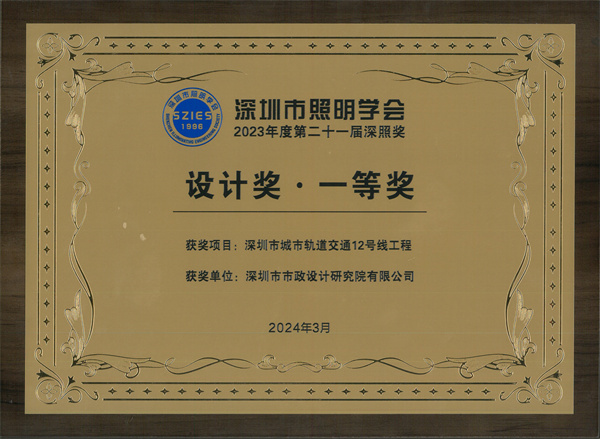 近日,深圳市照明學(xué)會舉辦了2023年度第二十一屆“深照獎”頒獎典禮。公司軌道交通院承擔(dān)勘察設(shè)計總承包的“深圳市城市軌道交通12號線工程”榮獲“深照獎”設(shè)計獎一等獎。