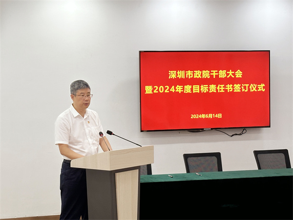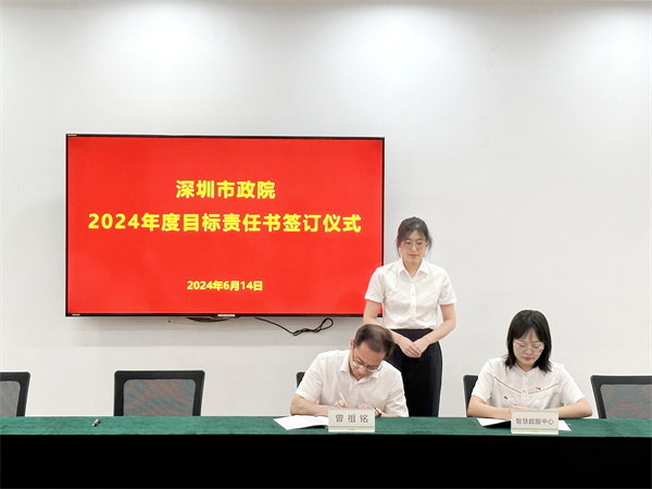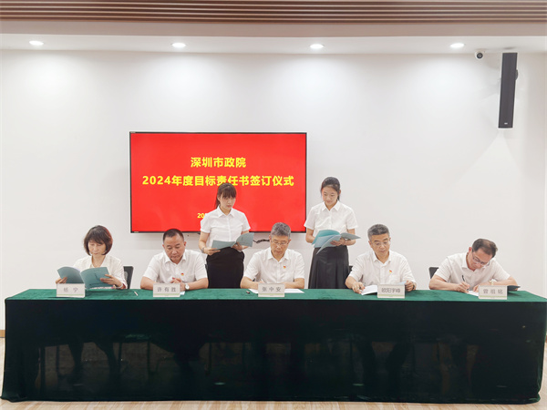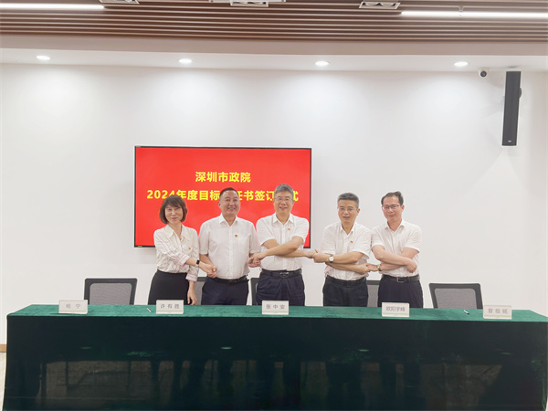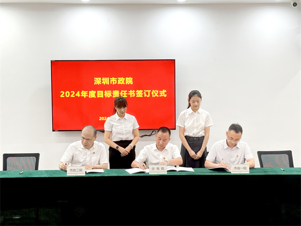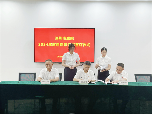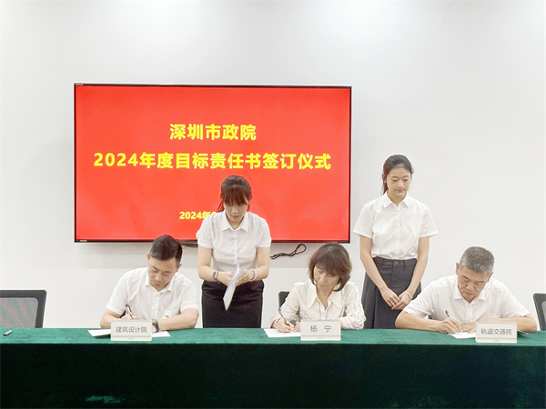 會議首先宣讀了深圳市政院組織架構調整、外地分院整合和領導分工三個文件。隨后,深圳市政院總經理張中安與各生產部門分管領導分別簽訂了2024年目標責任書。各生產部門分管領導與分管部門分別簽訂了2024年目標責任書。