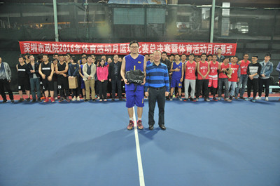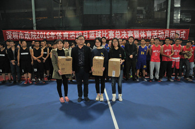 接下來進行的是閉幕式,張健君副總經理分別為冠、亞、季軍頒發獎牌。此次比賽還頒發了2016年體育活動月最佳風尚、女生投籃和總決賽MVP等獎項。