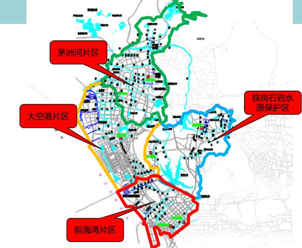 該項目位于寶安區(qū)前海灣片區(qū),地理位置屬于新安和西鄉(xiāng)街道,流域劃分屬于珠江口水系,面積約為117km2。該項目包含21個子項目,涉及面廣,包含河道整治、雨污分流、黑臭水體、防洪排澇(含深層隧道)、管網(wǎng)清淤和修復類項目。項目階段包含規(guī)劃統(tǒng)籌、工可和初設階段。該項目總投資約56億元,勘察設計費共3071萬元(其中勘察費約1200萬元,設計費約1871萬)。我司市政設計二院給排水組從2016年4月起,參與寶安區(qū)前海灣片區(qū)水環(huán)境整治評估咨詢工作,通過對該片區(qū)前期咨詢和設計成果的積累,已對該片區(qū)的水污染治理、管網(wǎng)及內(nèi)澇情況有了充分了解。
