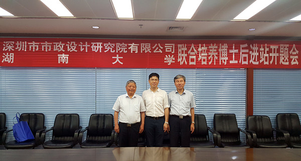 2017年7月29日下午,公司與湖南大學聯合培養博士后進站開題會在市政設計大廈三樓會議室舉行。中國工程院陳政清院士,全國工程勘察設計大師王用中、車宇琳,湖南大學華旭剛教授,東南大學宗周紅教授,地鐵集團陳湘生總工程師,深圳市人社局周寬山科長以及我公司董事長陳宜言設計大師等相關領導、專家參加會議。