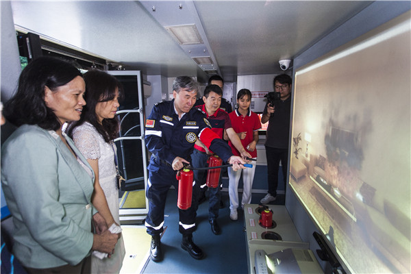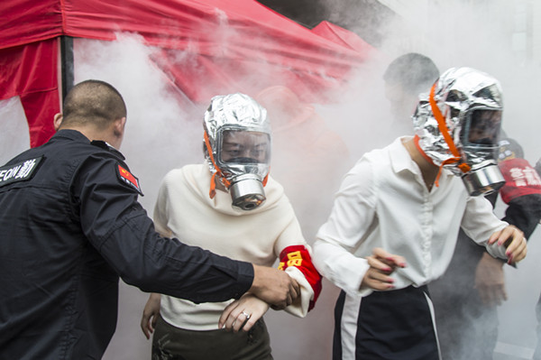 滅火毯、防煙面具、獨立無線煙感報警器、投擲滅火彈、環保水基型滅火器、穿越火災煙霧場景帳篷等消防知識講解精彩紛呈。
