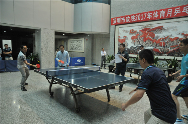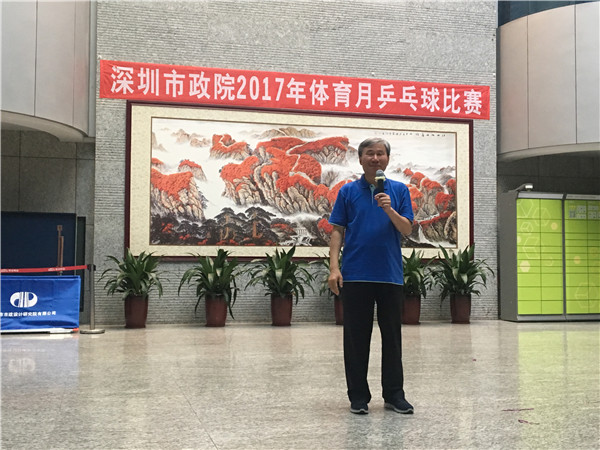 2017年11月14日下午,市政院2017年體育活動月乒乓球比賽在市政設計大廈主樓大堂精彩開戰(zhàn)。國球乒乓一直深得公司員工喜愛,今年的體育月乒乓球賽吸引了各部門眾多乒乓愛好者參與。參賽選手們激情滿懷,觀戰(zhàn)的同事們熱情高漲,助威聲、贊嘆聲此起彼伏,熱烈的氣氛洋溢在比賽現場。公司董事長陳宜言為比賽致辭,并與副總經理張健君一起為比賽開球。副總經理公司許華林也親臨比賽現場為運動員們加油。