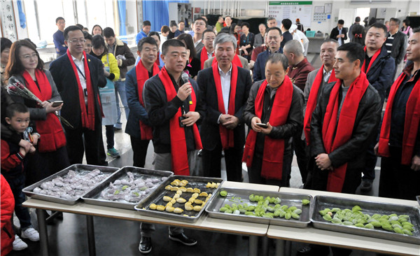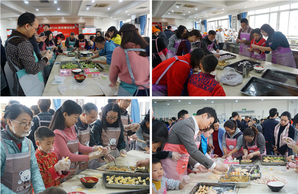 來自各個部門的代表和家屬組成了紅、黃、綠、紫四個隊伍,各隊的隊員穿上了與代表隊名稱相稱的服飾,并帶上了專屬顏色的圍裙,為活動增添了繽紛的節日色彩。四位隊長介紹了自己隊伍的隊名、人員組成和口號,并對餃子造型進行了介紹。紅隊的“雄赳赳,氣昂昂,餃子包在我身上,我們都是佼佼者”、黃隊的“和諧友善,愛國富強,我最敬業”、綠隊的“一鼓作氣,勇創佳績”、紫隊的“包包包,吃吃吃,我們不一樣”,各隊新奇有趣的口號和寓意豐富的擺盤造型獲得了現場陣陣掌聲。