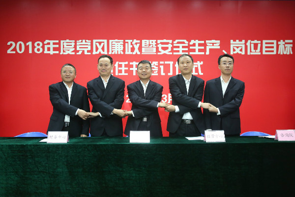 “千斤重?fù)?dān)眾人挑,人人肩上有指標(biāo)”,2018年黨風(fēng)廉政暨安全生產(chǎn)、崗位目標(biāo)責(zé)任書的簽訂,標(biāo)志著新一年各項(xiàng)工作全面分解落實(shí),希望大家不忘初心,在新時(shí)代新使命的召喚下,在新思想的引領(lǐng)下,堅(jiān)韌不拔,鍥而不舍,腳踏實(shí)地,確保2018年度各項(xiàng)目標(biāo)圓滿完成,公司發(fā)展更上一個(gè)臺(tái)階。