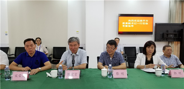 2018年6月15日上午,南平市委書記袁毅,南平市委副書記張國(guó)旺,南平市委常委、統(tǒng)戰(zhàn)部部長(zhǎng)莊莉,南平市委副秘書長(zhǎng)、辦公室主任楊青建,武夷山市委書記林旭陽(yáng)等一行到我公司考察指導(dǎo)。深圳南平商會(huì)會(huì)長(zhǎng)吳坤等領(lǐng)導(dǎo)隨行考察交流。我公司董事長(zhǎng)、全國(guó)工程勘察設(shè)計(jì)大師陳宜言及領(lǐng)導(dǎo)班子成員參加座談。座談會(huì)由我公司總經(jīng)理蔡明主持。