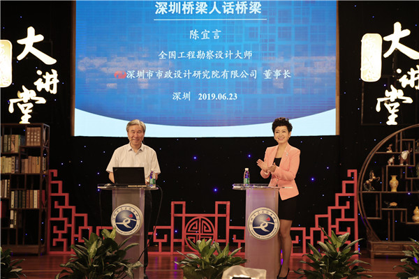 2019年6月23日,公司董事長陳宜言大師應深圳市委宣傳部、深圳市社科聯聯合邀請做客深圳市民文化大講堂,在深圳圖書館五樓報告廳為市民朋友作了一場題為《深圳橋梁人話橋梁》公益講座。