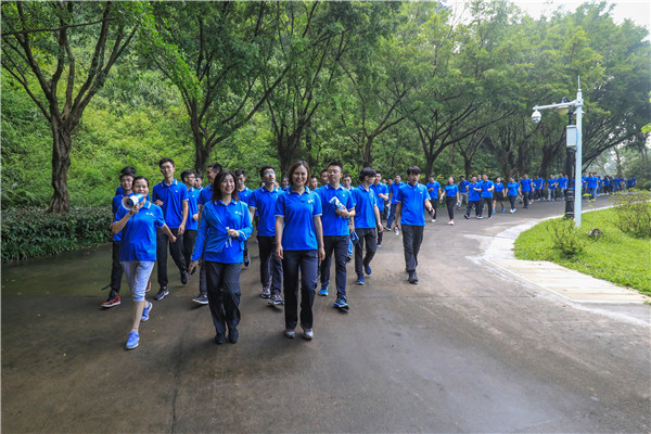 當(dāng)天下午,300余名青年員工統(tǒng)一著裝,前往筆架山公園開展健走活動。健走途中,對植物有獨到研究的同事們發(fā)揮專業(yè)之長,沿途講授植物百科,并帶領(lǐng)大家認識了形態(tài)各異的植物:有公園入口迎賓的高大美麗的異木棉、具有150年歷史的古老滄桑的魚木樹、頗有名氣的中國無憂樹、一日落花的印度紫檀、稀有的酸豆樹等等,特別對設(shè)計師們應(yīng)該了解的園林景觀知識點進行普及,加深了大家對設(shè)計理念的思考。迎著秋風(fēng)習(xí)習(xí),踏著落葉片片,在自然之間的我們不僅舒緩了工作壓力,同時發(fā)現(xiàn)植物之美,更是以行走的力量踐行著綠色健康的生活方式,展現(xiàn)出市政院人青春活力的昂揚面貌。