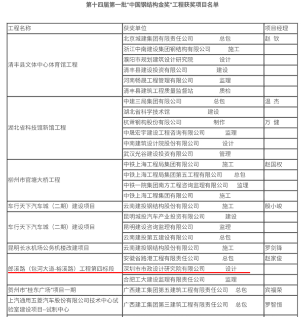 近日,由市政院勘察設計的合肥市郎溪路工程第四標段獲得第十四屆“中國鋼結構金獎”。