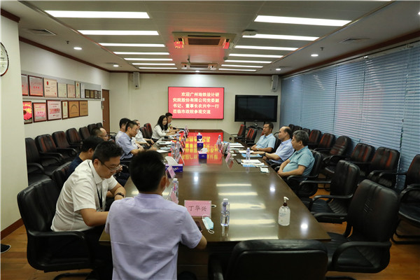 2020年7月21日,廣州地鐵設計研究院股份有限公司(以下簡稱“廣州地鐵院”)黨委副書記、董事長農興中,黨委委員、副院長趙德剛,深圳分院院長陳小林一行來公司交流座談,公司黨委書記、董事長劉樹亞,黨委副書記、總經理劉勁松,黨委副書記劉啟勝,副總經理丘建金,技術專家王建新及軌道院相關負責人熱情接待,并在市政設計大廈主樓三樓召開交流座談會。