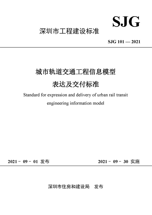 9月1日,深圳市政院與深鐵建設牽頭編制的《城市軌道交通工程信息模型表達及交付標準》(SJG 101-2021)、《城市軌道交通工程信息模型分類和編碼標準》(SJG 102-2021)兩本地方標準正式發布,自2021年9月30日起生效實施。