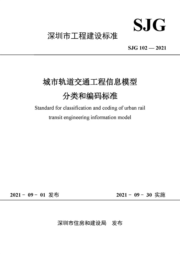 SJG 102-2021 《城市軌道交通工程信息模型分類和編碼標準》封面