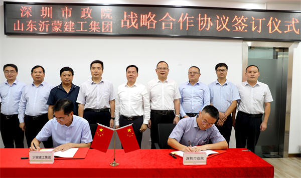 10月12日下午,深圳市政院與山東沂蒙建工集團有限公司在深圳簽訂戰略合作協議。深圳市政院黨委書記、董事長劉樹亞,山東沂蒙建工集團黨委書記、董事長邵明志,臨沂市政府副秘書長、臨沂市第三批年輕干部深圳研學實踐隊臨時黨支部書記、總領隊杜以方出席簽約儀式。