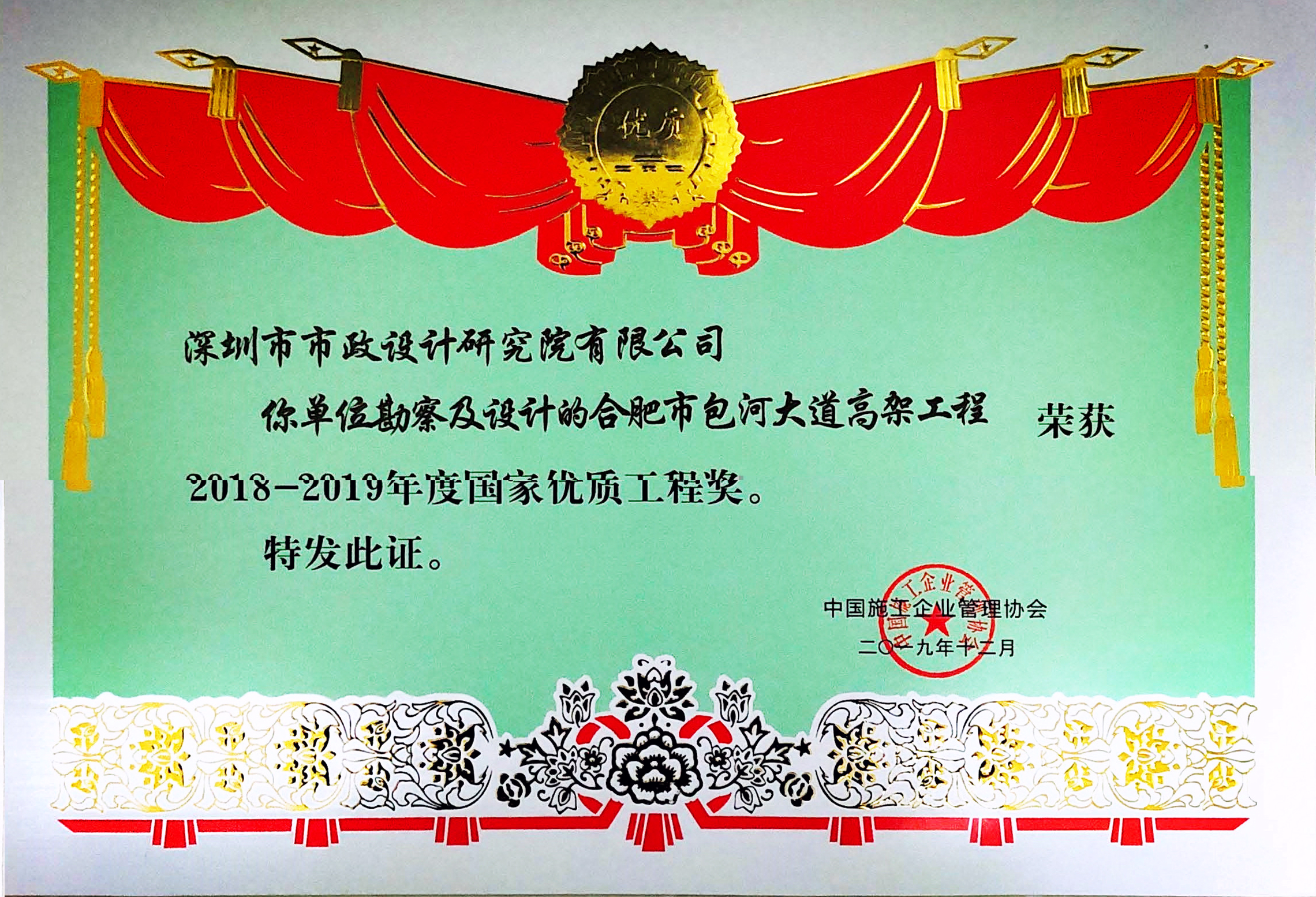 近日,由公司勘察設計的合肥市包河大道高架工程獲得2018-2019年度國家優質工程獎。