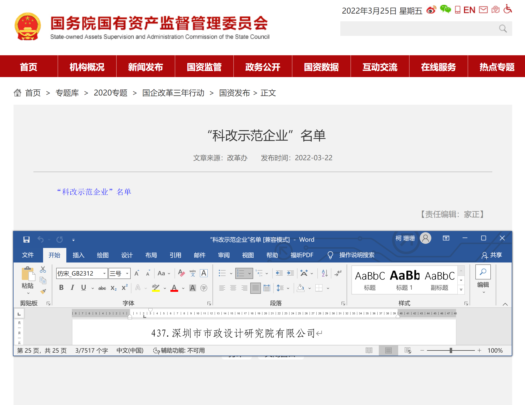 日前,國務院國資委公布最新的“科改示范企業”名單,深圳國資系統7家企業成功入選,深圳市政院榜上有名。