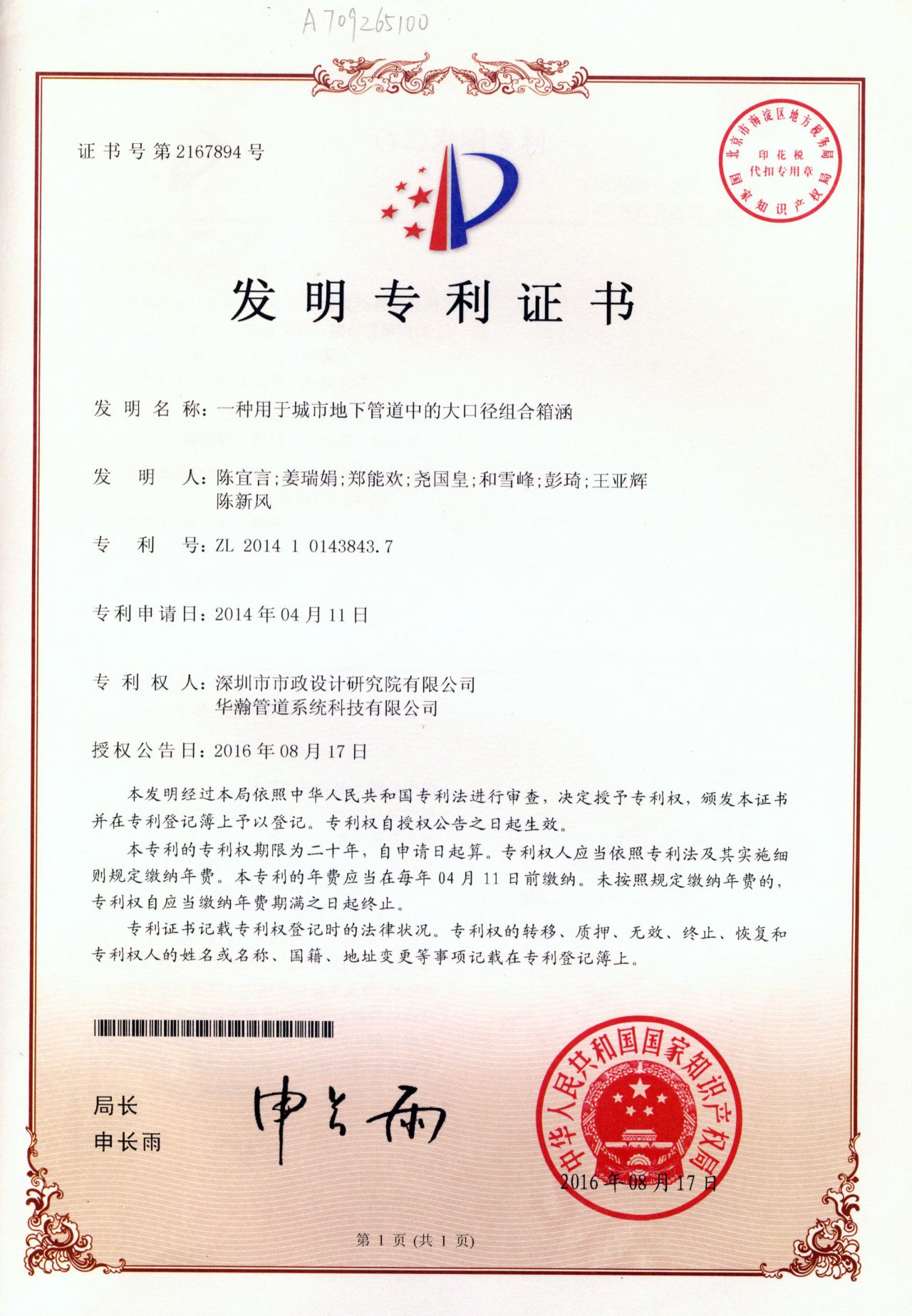 一種用于城市地下管道中的大口徑組合箱涵