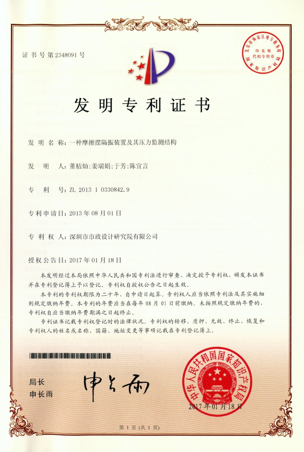 一種摩擦擺隔振裝置及其壓力監測結構