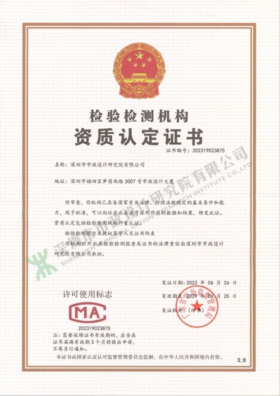 建設(shè)工程質(zhì)量檢測機構(gòu)資質(zhì)證書