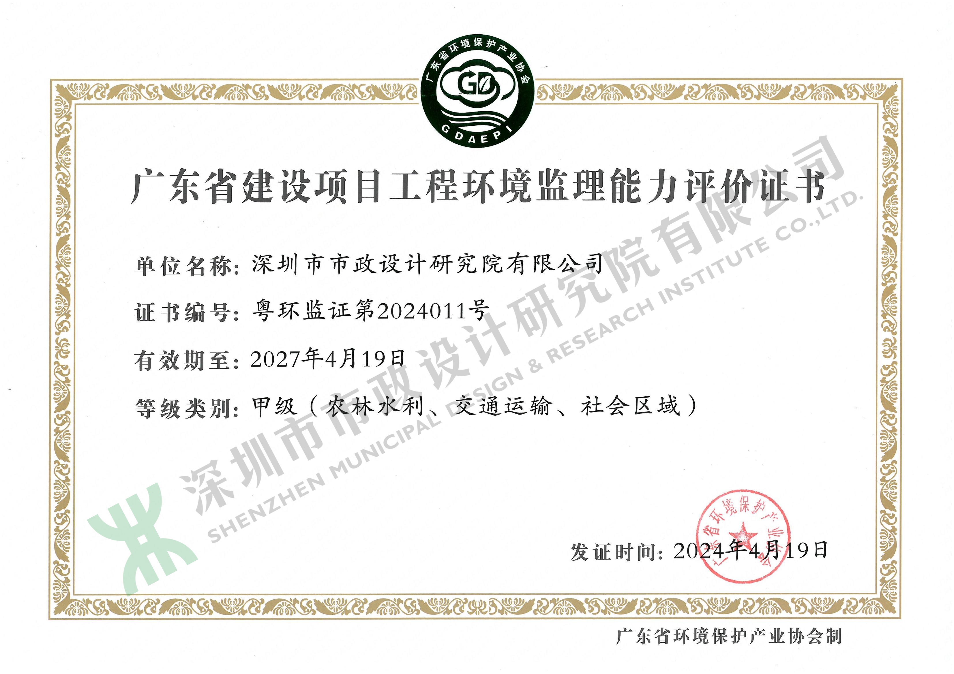 廣東省建設(shè)項目工程環(huán)境監(jiān)理能力評價證書