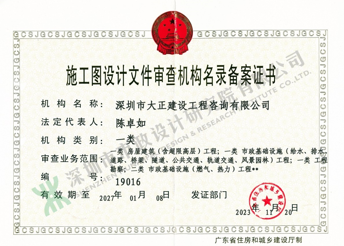 施工圖設(shè)計文件審查機構(gòu)名錄備案證書