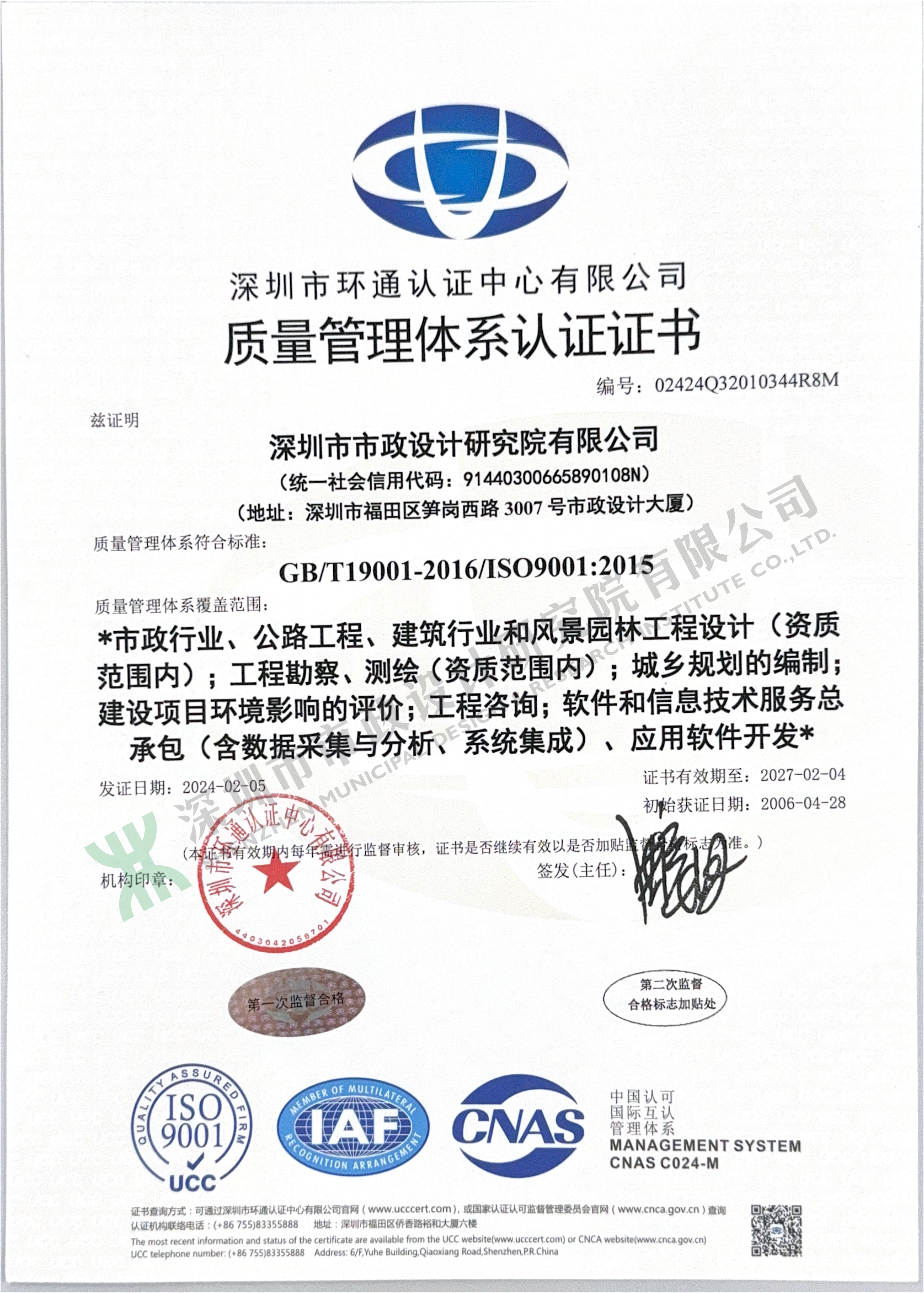 質量管理體系認證證書